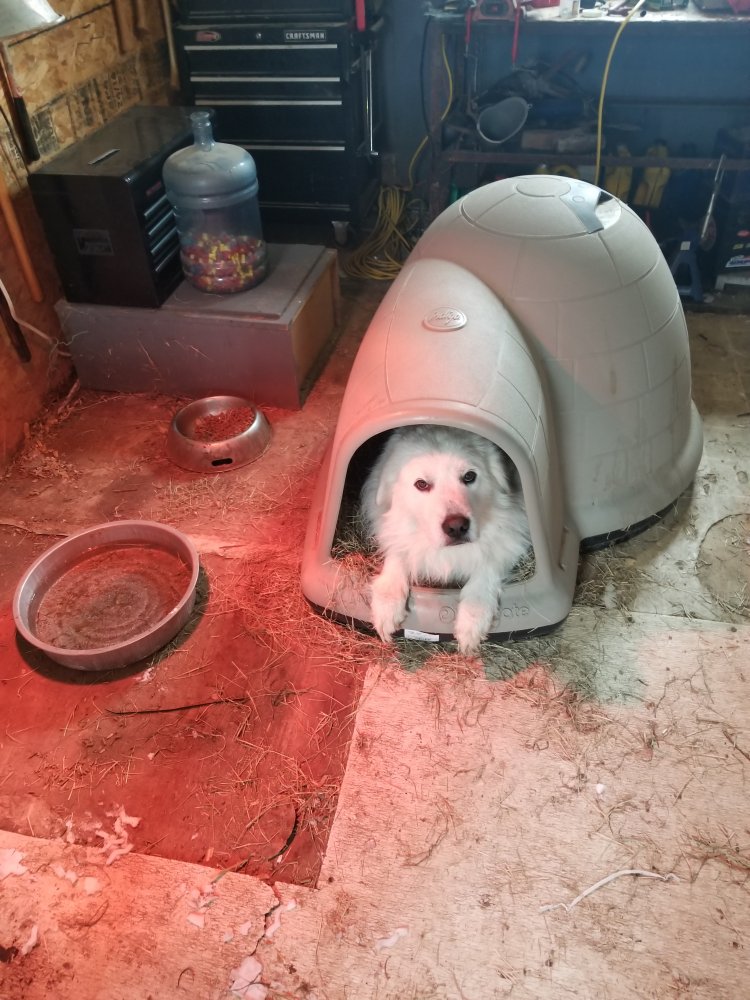I let this guy out for a couple hours. he ran around most of the time but i caught him trying to sleep in the flower bed covered in snow wallago and put him back in the shed. he's a big whine bag. I've never seen a dog act claustrophobic but he appears to be. the shed is maintaining 28 so far and the chicken coup appears to be more like 36. heat lamps help alot! if they can keep it above 20°f tonight I'll be surprisedView attachment 15473