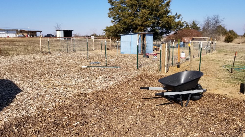 All but done with the garden. 5 cattle panel trellis in, new expansion sheet mulched. Still need to add a little more to the last raised bed but that's no big deal. I may just fill it the rest of the way with leaves and unfinished compost and then plant potatoes in it.