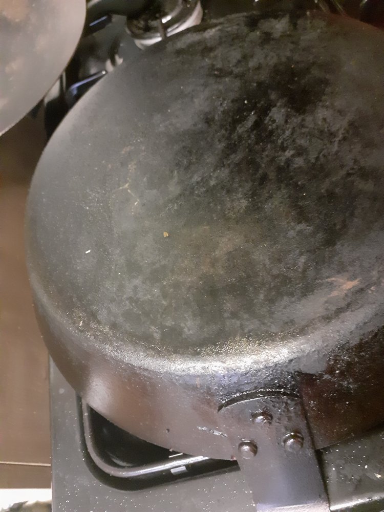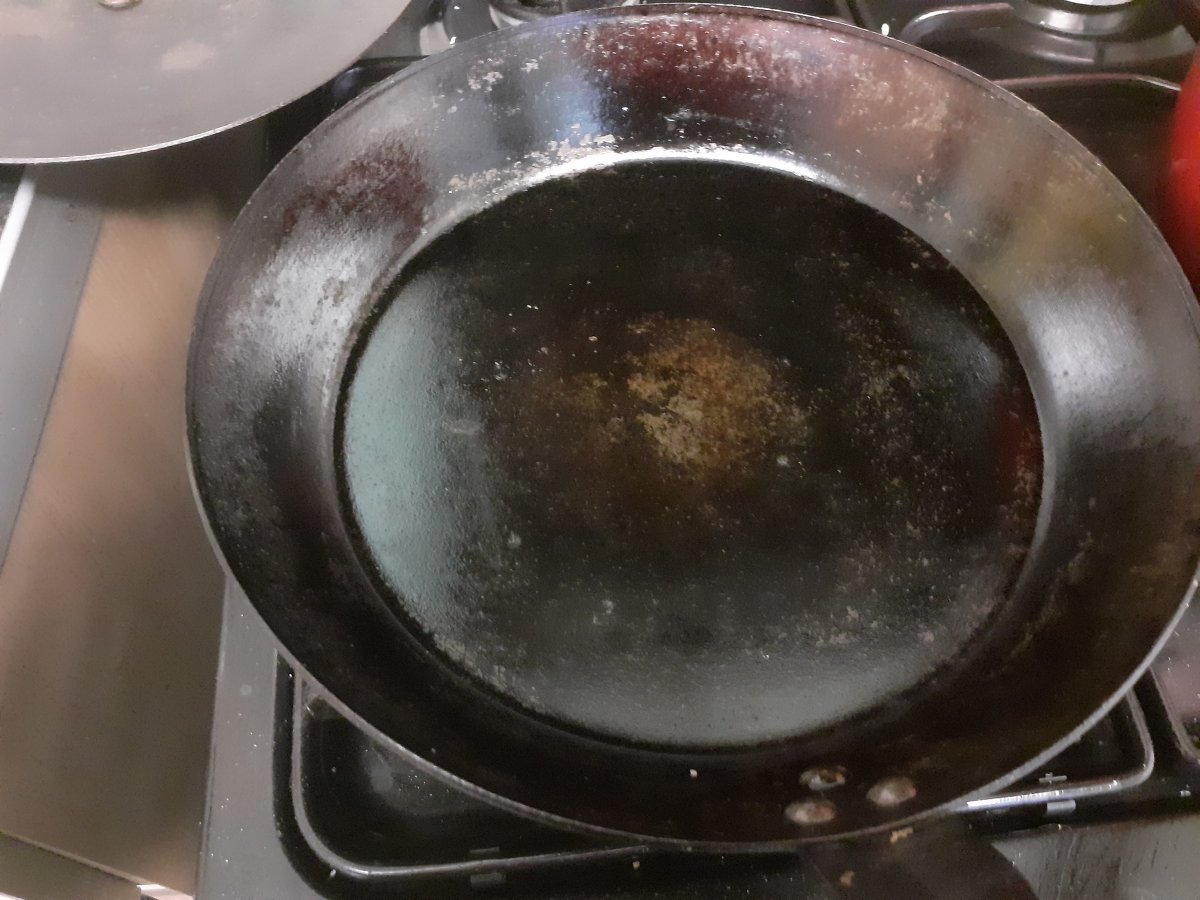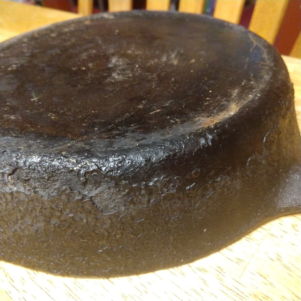 Now,, this skillet has always given me a pain, this one spot, no matter what I do, wont cure/cake over/??