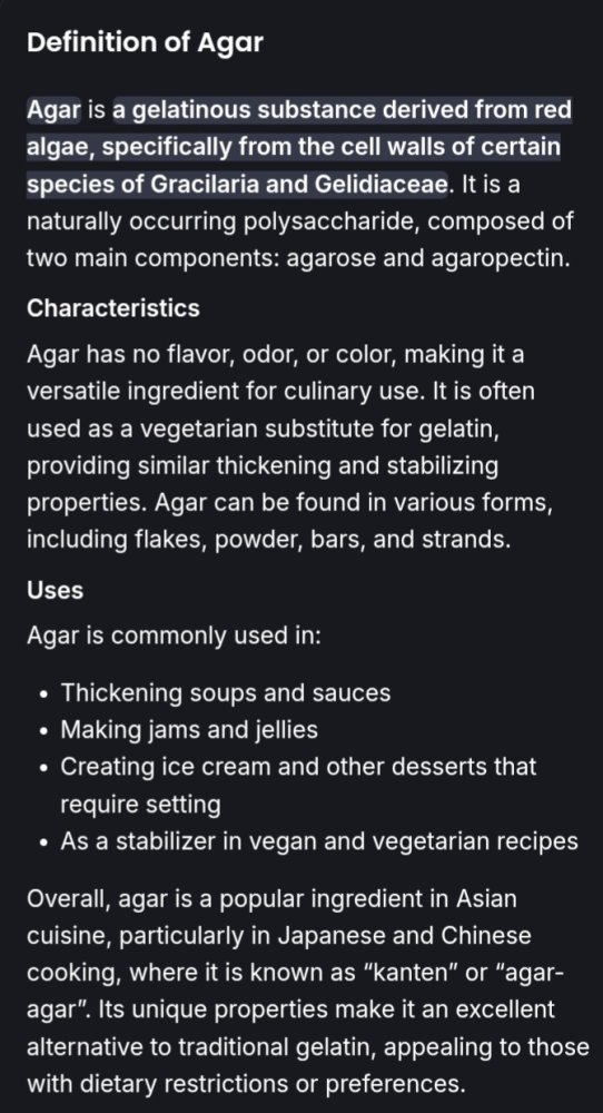 I think I migt try one... to see what it taste like. I must admit I had no idea what agar was until now though.