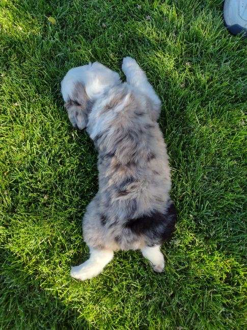 I raised Aussies in my younger days. Be careful of too much white. For whatever reason, it is an indication of deafness. My female had one with a lot of white and the stud owners wanted me to kill it at birth. I refused and found the puppy a pet home. She couldn’t hear, her owner taught her hand signals.Mom's going to put the deposit on this puppy for me. I'll pick him up in 3 weeks when I go visit. We've been looking for another dog to help around here. Standard Australian shepherd in blue merle and white.