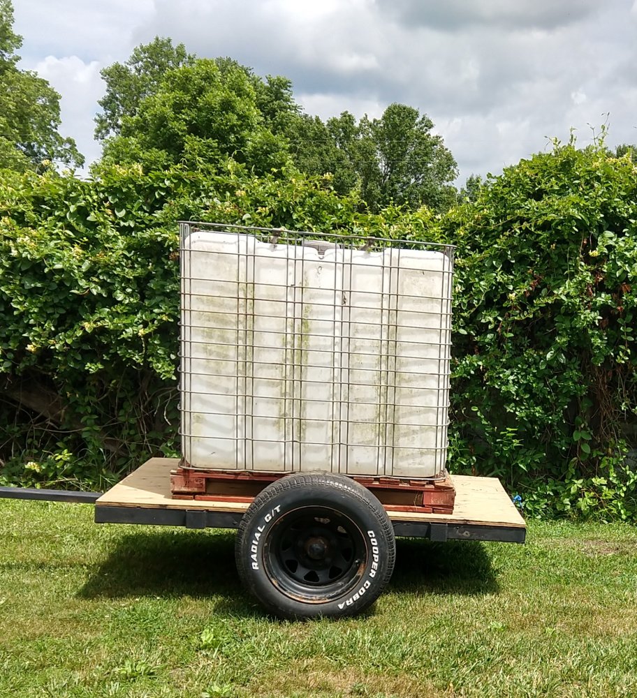 we just got two totes like this for watering at the land!Back burner project but I finally got the rust taken care of, painted with rattle can Rust-Oleum, screwed down 3/4" treated plywood deck, and got the tote mounted. I also cleaned the inside of the tote out with dish soap and water. Now I just need to plumb it for a garden hose and buffalo will be ready to pull around and water plants. I probably should spray some bleach water on the outside of the tote to clean it up some also.