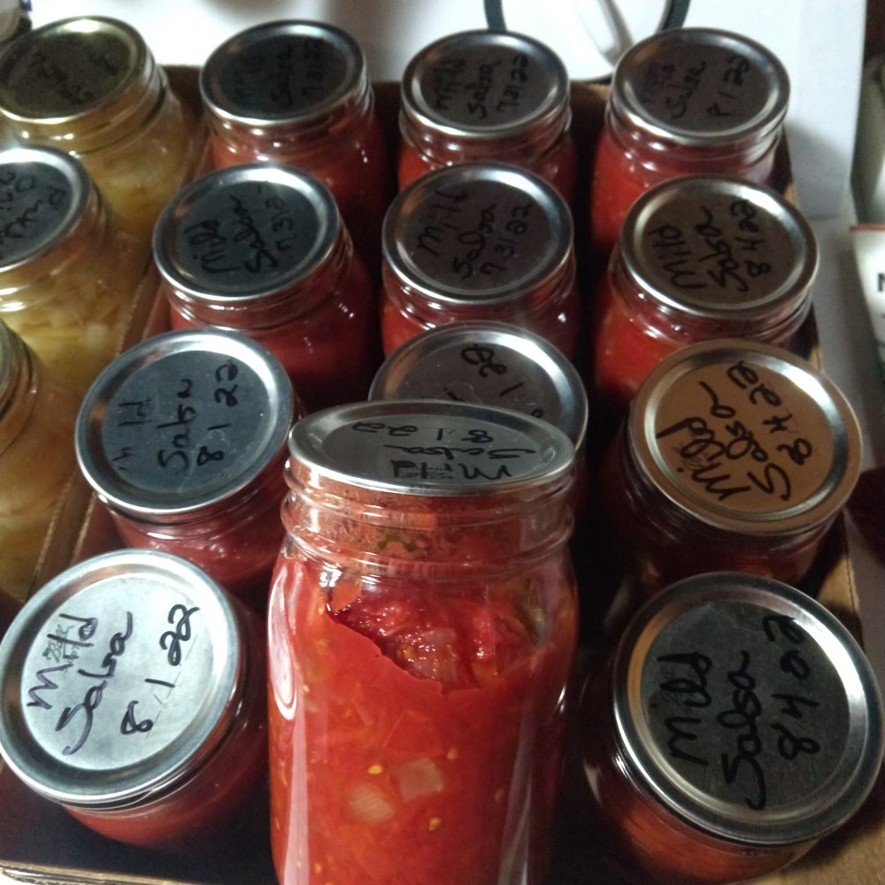 i am also glad that we keep it on the simple side here and only can tomatoes, everything else we grow gets eaten fresh or steamed and we get to it. onions, squash, garlic and peppers all take some time to go through and some gets processed and put in the freezer but we don't have a huge amount of room in there so that limits it some too.