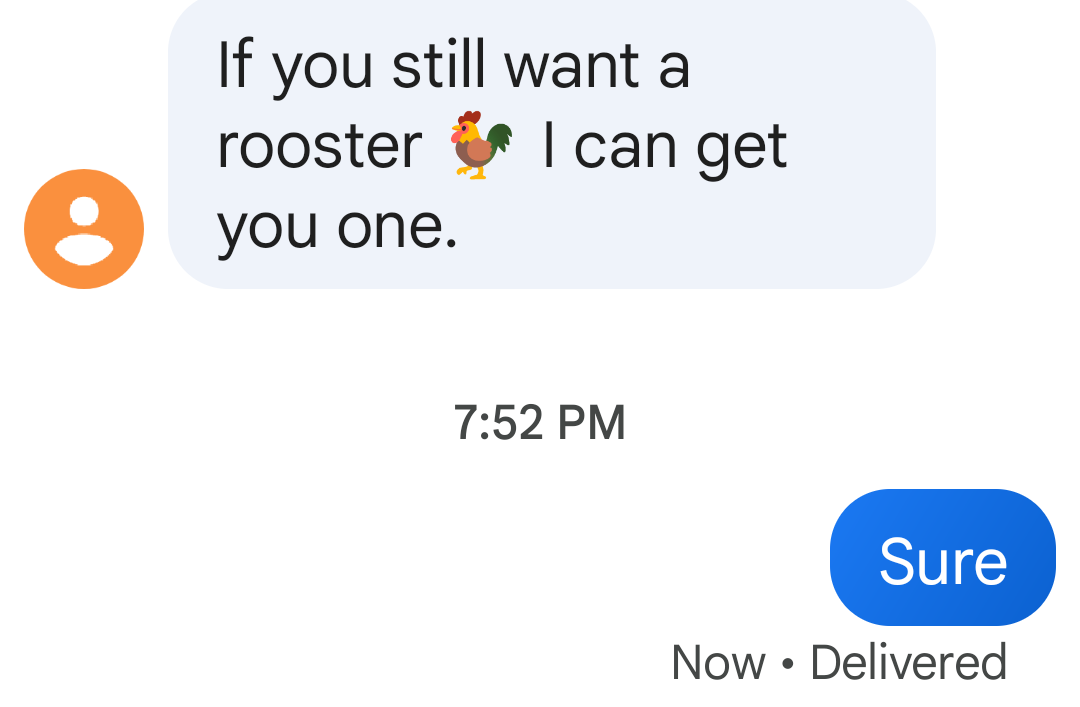 I'm not entirely sure how he knew I wanted a rooster. But I'll most definitely take a rooster