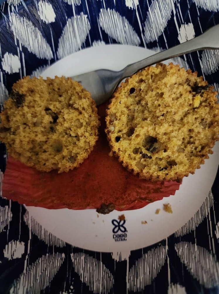 Pumpkin bread round 2, added chopped walnuts and raisins