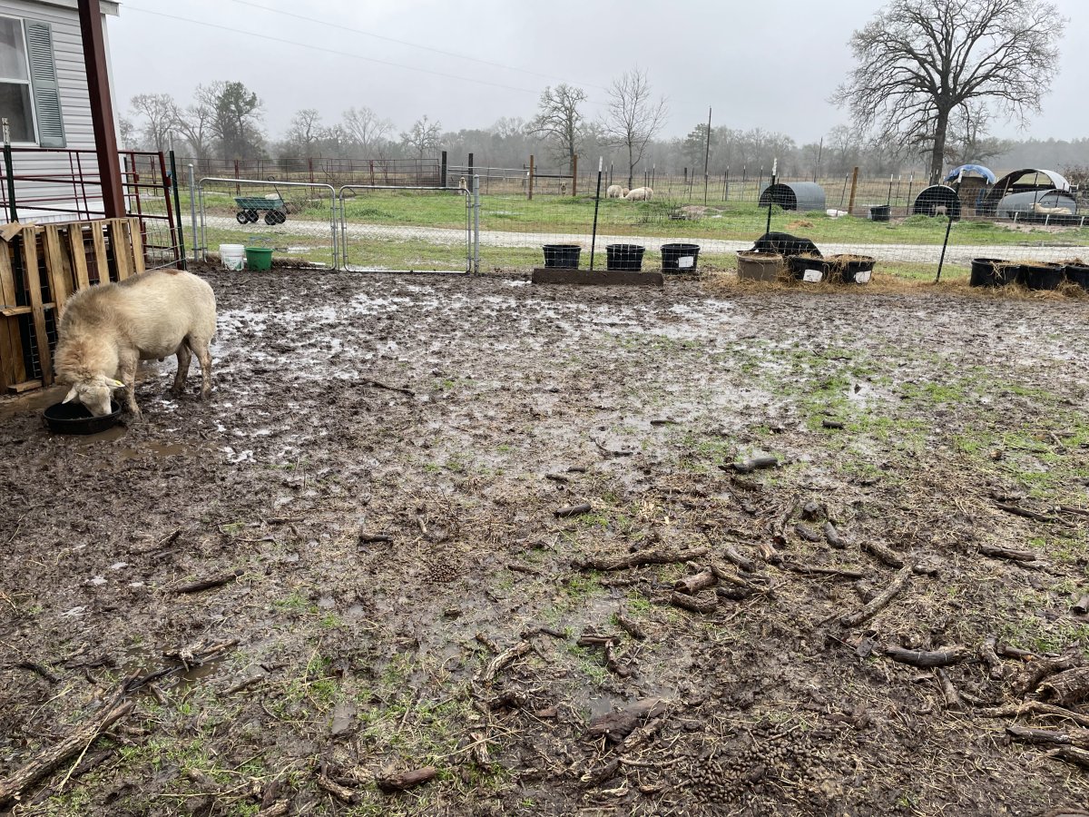 This is my front yard where Cooper and 8 ewes are. Their shelter is wet inside too.