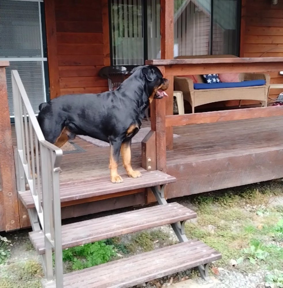 So that what you call it "territorial mode". I just always thought that rottweiler stance was. I see or hear something ain't right. I want to remind you, I'm big and you're small.