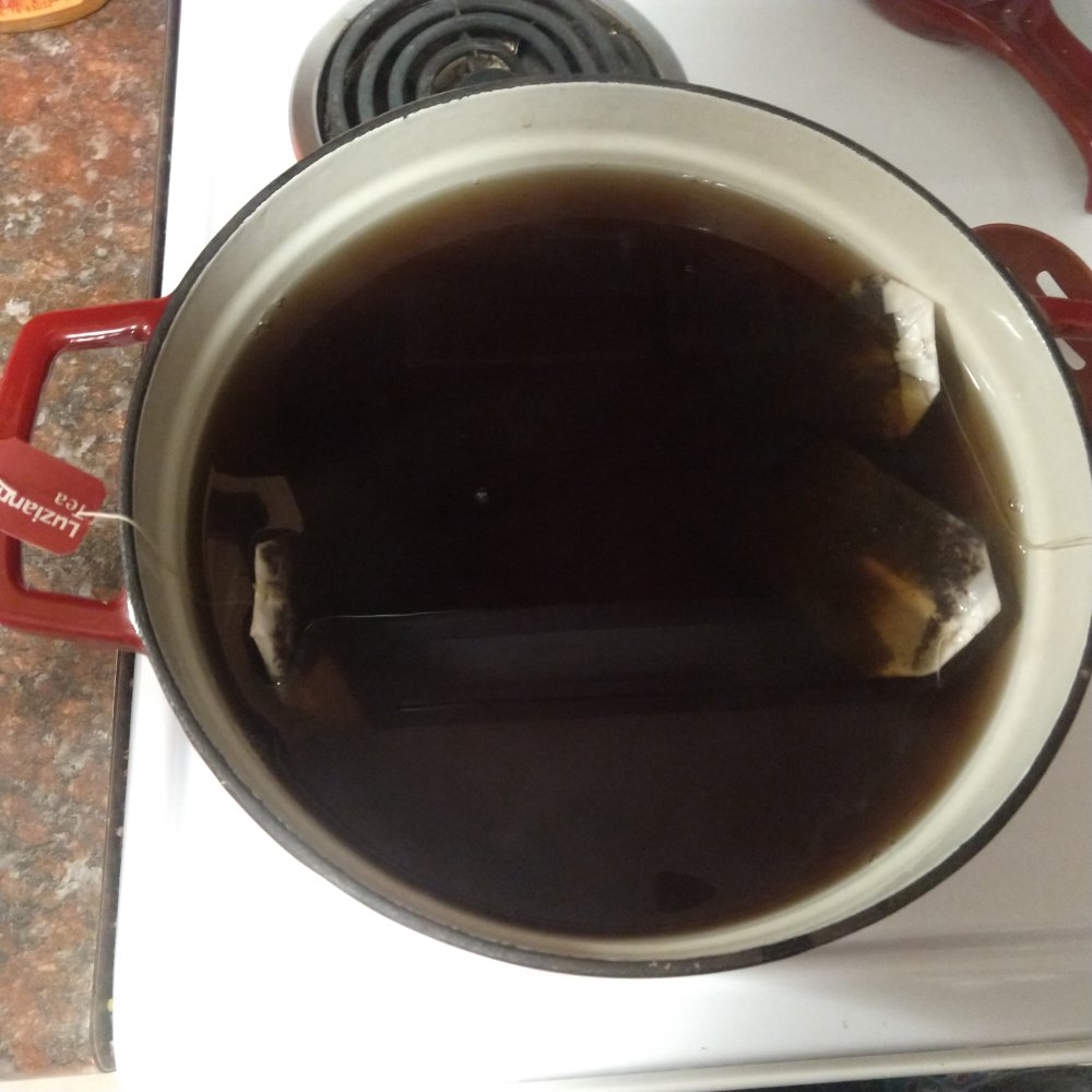 1) 1 gallon of strong and very sweet black tea that has cooled to room temperature. I let the pot cool overnight with the lid on.