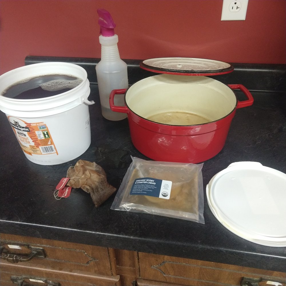 It's just a really strong and sweet, tea in non-chemical treated spring water at this point. I want to believe the key is to keep ingredients pure and at room temperature. for a strong ferment when I add in the SCOBY.