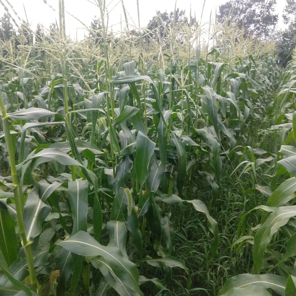 With the drought and strong wind storms, I honestly didn't think our corn was going to make anything, I seem to recall some of it got blown over. But surprise, leaves are dark green, some is 7 and 8 foot tall in tassel, ears in silk 🤷‍♂️ Hey if we get corn it'll be no spray organic 😉