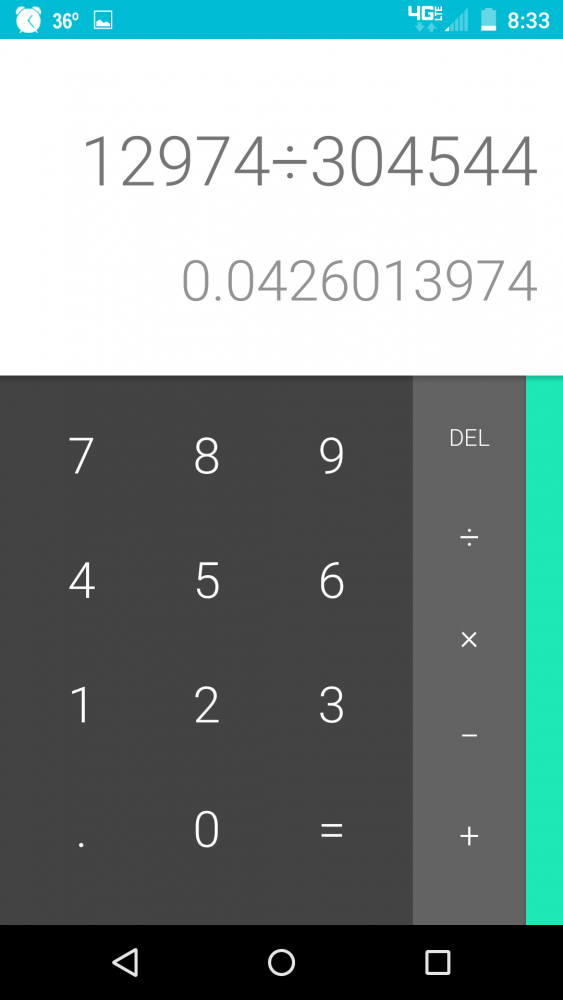Your answer is wrong. It's 4.26% you dont figure out percentage just by dividing. That's only step one of converting from fraction to decimal. Step two is multiplying by 100 to get percent.