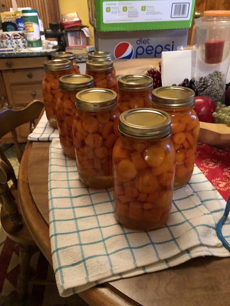 These smelled divine! I can't grow them that well here either.I did my first ever carrot canning a few weeks ago, when they were on sale @ 69 cents/#. I honestly didn't expect much flavor, since they were plain ol' run of the mill grocery store carrots grown in crap soil. But... we had our first jar a week ago, and OH MY GOODNESS!!! Sweet, flavorful. INcredible. So... even if I can't grow good carrots on my soil, i intend to continue canning them when I find them on sale at grocer!