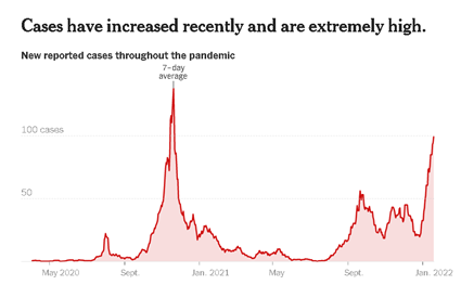 I've been watching this graph (of COVID cases in my county) with interest/curiosity. Looks like hospital system is doing okay, but they don't have much capacity. They've been at ICU 86% occupied, which is just 1 empty bed. I wonder if omicron variant can get some herd immunity going without overwhelming the hospital system? That would be the best possible outcome - a huge step towards COVID becoming an endemic seasonal cold/flu that is manageable.
