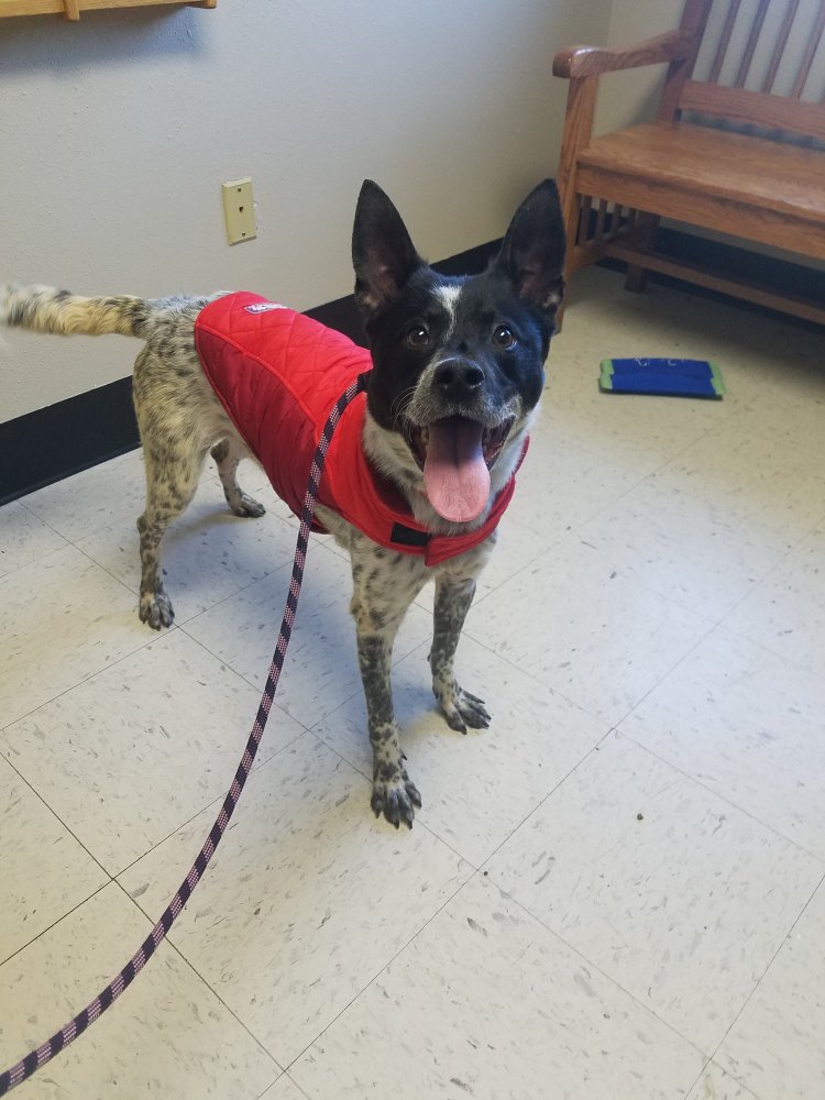 I bought a new dog seat belt for the car that uses latch system. Buddy tap dances on the buckle and pops my car seat belt connector out. Not secure enough for traveling with fosters! And I bought a harness for Splash, because I'm a sucker. He was much-much better about mouthing/nipping today. Yesterday I wasn't sure he would be okay here - with DS7 training him too. Splash gets vaccinated and neutered on Monday, so I expect to pick him up on Tuesday. 🤞