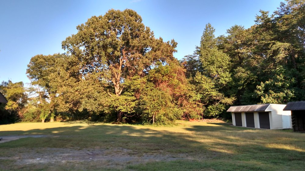 Down at the shop looking up toward the house