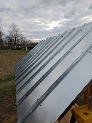 Thanks @baymule and @tortoise it's kinda for fun as I have time/ stress relief project that my goal is to do it for under $500. So today more roof built tin and installed 1½ hrs cost $66 dollars. Size 15' wide by 7.5' deep
