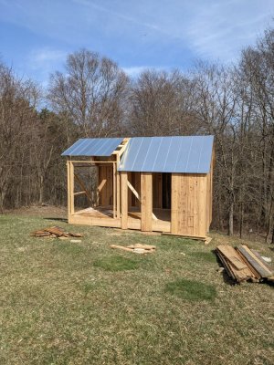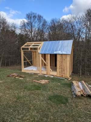 Not much to report got a few things nailed in window opening and a removable wall by the door. Bought plexiglass for the windows 4x $18 =72 might not use it all waiting on sawmill to get new blades to finish siding.