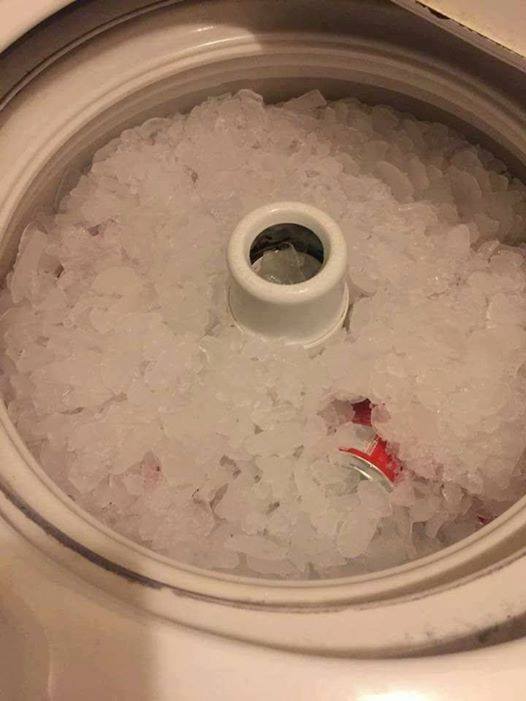 Put waters and drinks in washer and fill with ice. Drinks stayed cold for days! And water just runs out.