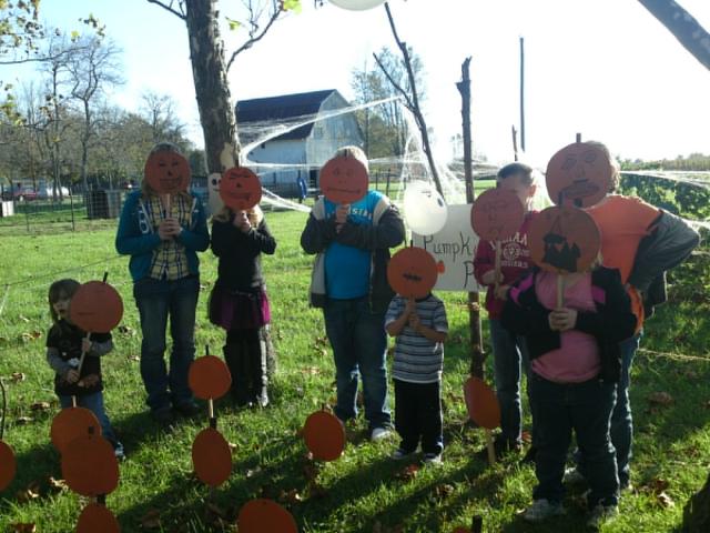 (tears of joy) I guess his "other" grandma just sits and watches TV with them all day. UGH!!! GET OUTSIDE WITH THEM! After I left there, I went to the store for bread, hot dog buns and a few other last minute things. Came home and made the pumpkin patch sign..