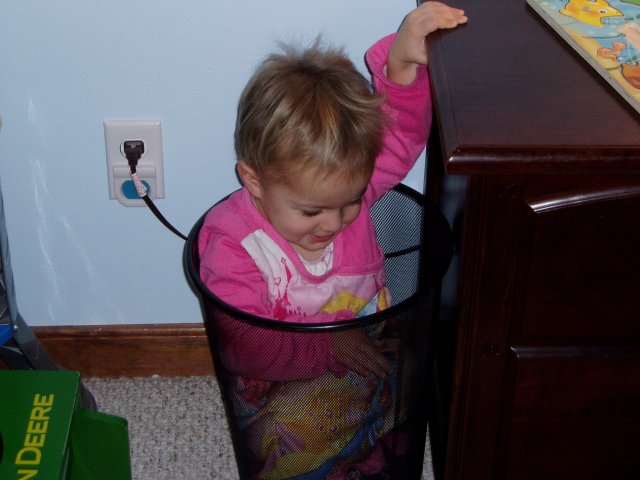 LOL on the trash can picture! Definitely she looked stuck..HA HA HA