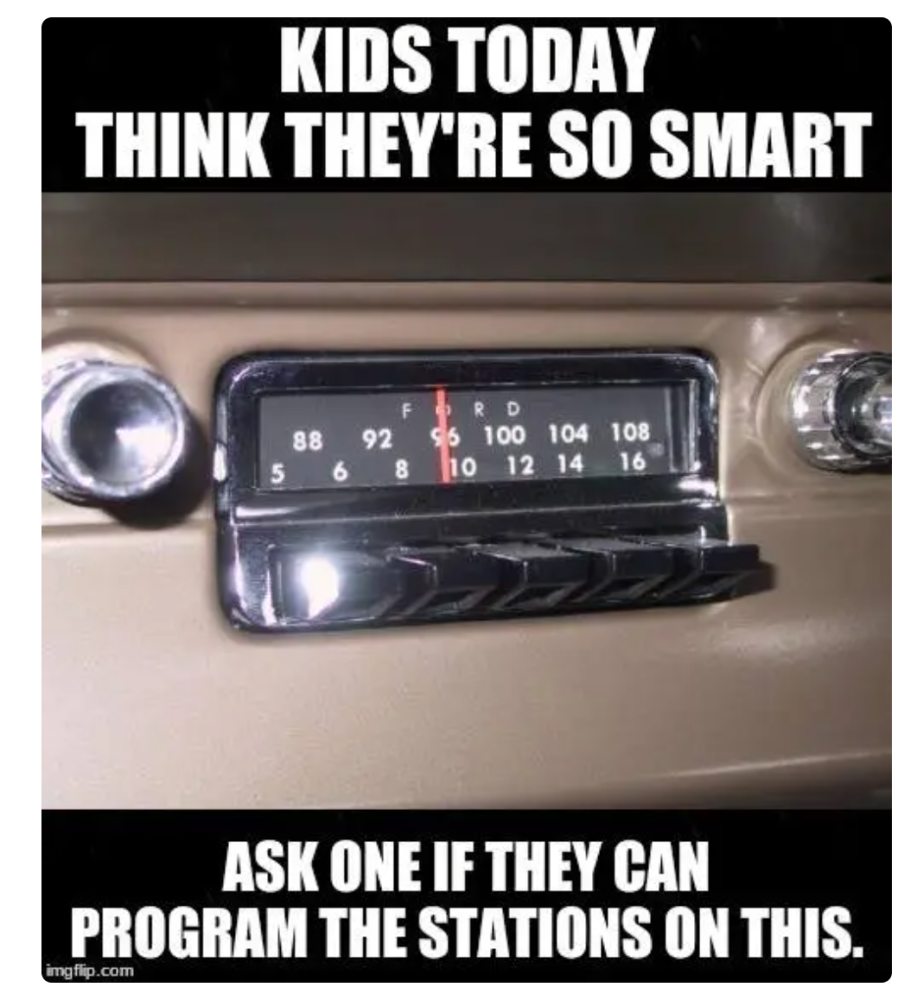 I know people my mother's age that can't set the stations on one of those. My first car was a 1980 Malibu with one of those AM radios. The '79 Blazer that my brother got at least had one in AM/FM. Youngest brother got a late 70s Firebird also with AM/FM. Yes, my parents were nice and gave us the cars they were going to sell anyway.