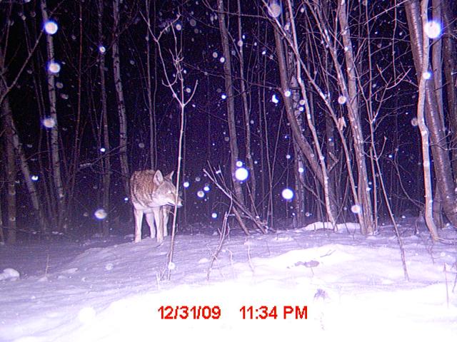 Here's the dog that sticks around my chicken coop... Had to post a pic after seeing one of wildsky's westeren Coyotes. New research was found in Vermont and most of our Coyotes are mutts, bred with the eastern wolf. They are larger than western coyotes but smaller than wolfs. I guess a more correct term is coy wolf?