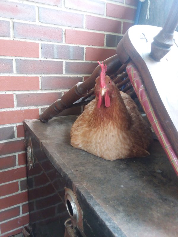 I've got this chair on my deck so I can fix the bottom of the seat for a friend. This hen likes it too...View attachment 10515