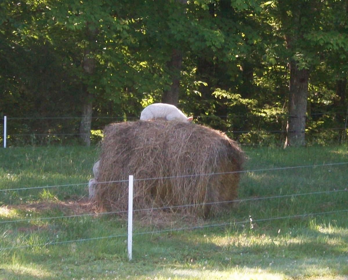 Bay, if only! That's not ours....it's an absentee owner's meadow next to our land. We mow it for them but decided to mow it with sheep this year. No more gas money to be spent on land that's not ours.