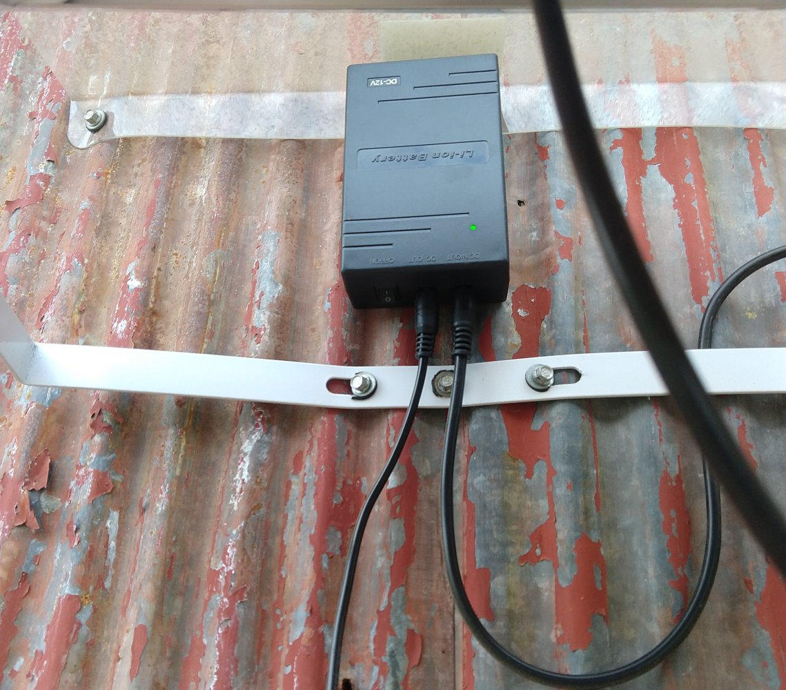 The battery (rechargeable 12 volt lithium) green light means fully charged, yellow partly charged, red not charged. I mounted it behind the solar panel.