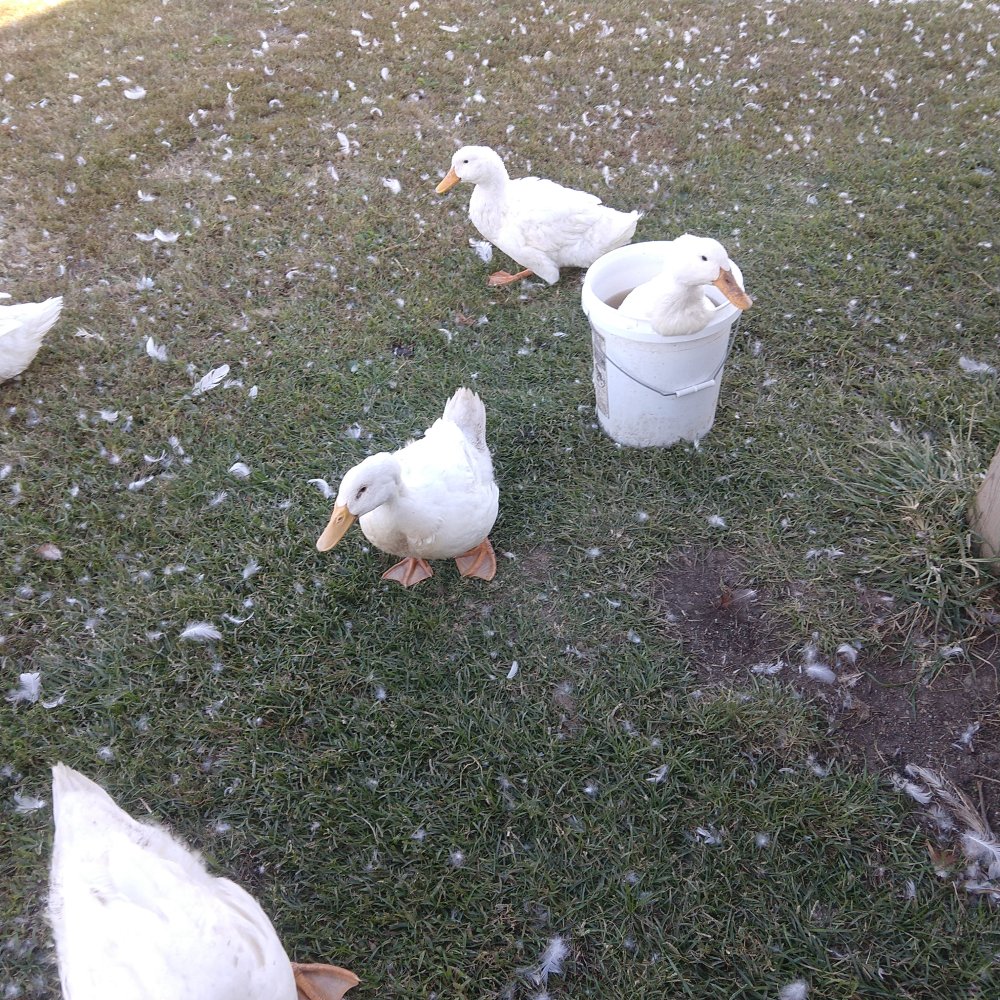 My routine is to house them in the turkey yard at night. I let them out in the morning with a 5 gallon bucket of water. They dribble out of the bucket during the day. I fill the turkey waterer with another 5 gallon bucket while the ducks are out. If I don't do it this way, the turkey waterer will be dry because the ducks will dribble it until gone. The way it works now is rvery morning the turkey waterer is empty, so every morning I fill it up (5 gallons). Alone my 4 turkeys drink about 5 gallons of water every week. Add 9 ducks and it's 5 gallons every night.