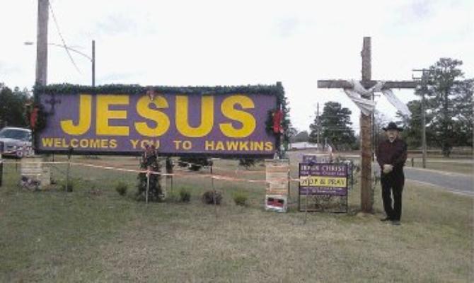 Hawkins is not far from us, the city was fighting the ACLU because the sign was on city property. A church bought the land and sign to get the ACLU off their backs.