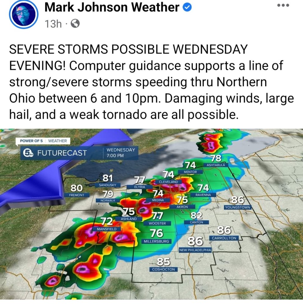 Mixed forecasts for late afternoon, everything from light scattered rain to heavy storms with medium sized hail. I dunno?