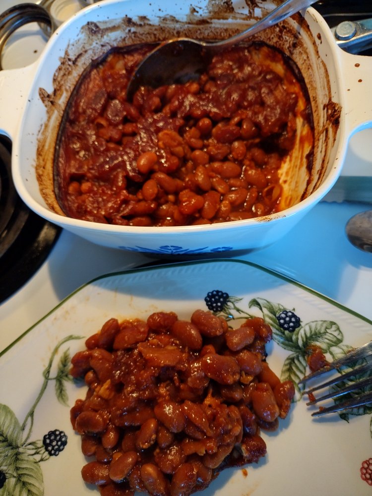 Here ya go -- if you told me these were Bushes home style, I'd believe you! Not to sweet, salty, etc. personally, I'm doing more ☺️. Now, I'm going to add a tablespoon of BBQ sauce to it (or tsp dry) because I like that & doit to bought canned ones. You could add bacon bits to canned mix -- in case no bacon at cooking. I like strips on top when I bake them & didn't today.