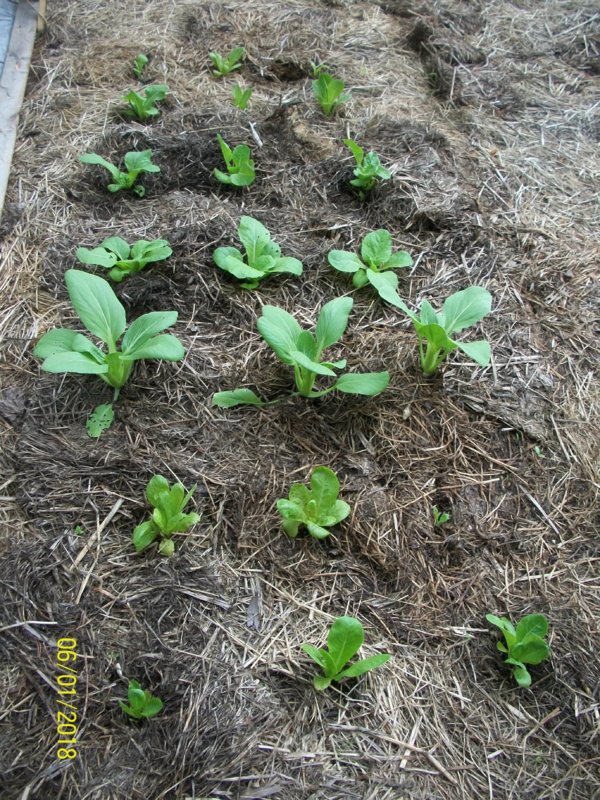 My low tunnel and the green growing under there~romaines, pak choi, napa cabbage.
