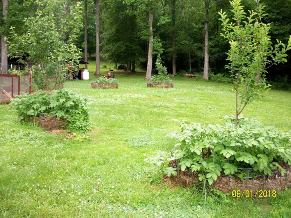 Spud rings are doing well with all this rain, growing like weeds and blooming already....