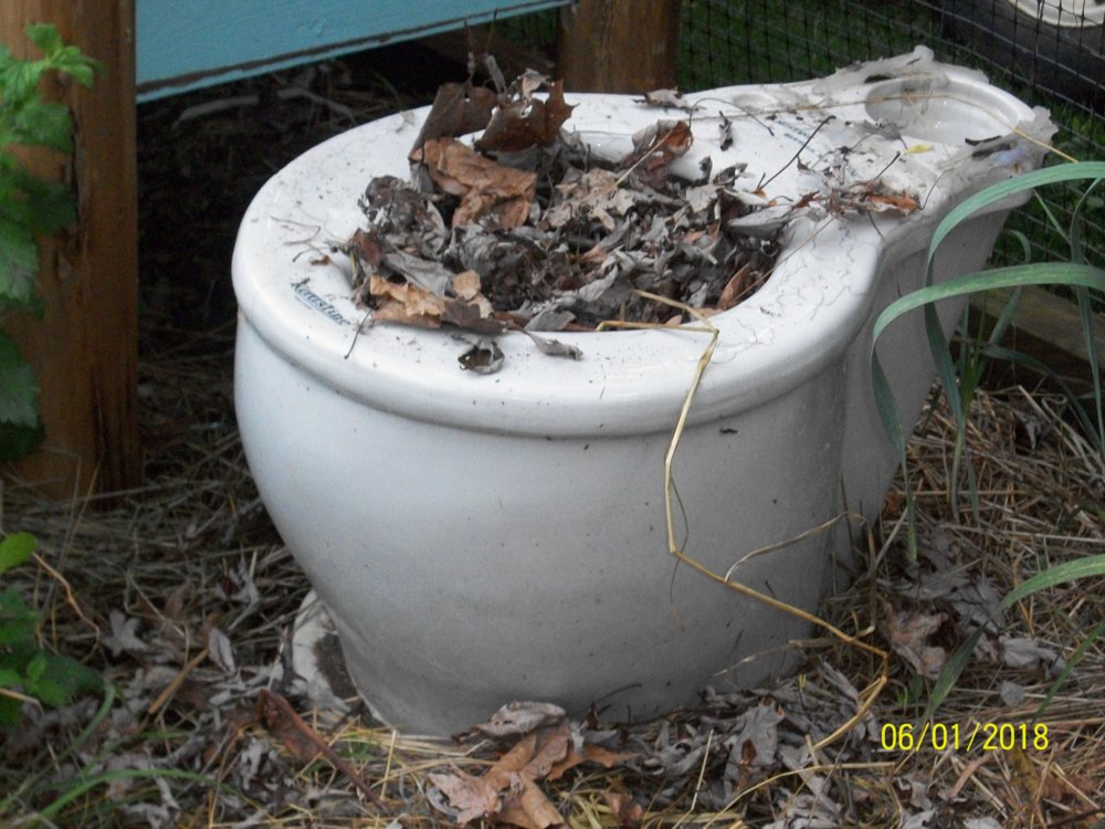 Also planted the rest of my spuds into a fence ring, layering in chicken compost, hay and leaves on top. Also did the same in the commode in the garden...should be fun to see if I can grow spuds in a commode.