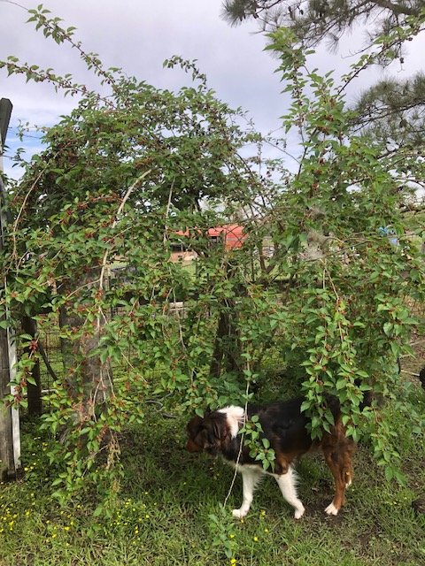 I harvested mulberries yesterday and today. I've got some in the freezer and I think I'll put the next batch in the dehydrator. Might try to make a low carb cobbler or pie or something yummy. Its hard to see in this pic, but the tree is so loaded that some branches are touching the ground.