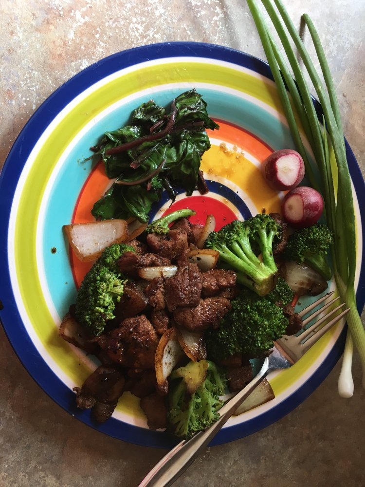 We had pork baby back ribs with macaroni and potato salad last night. Leftovers for lunch today.