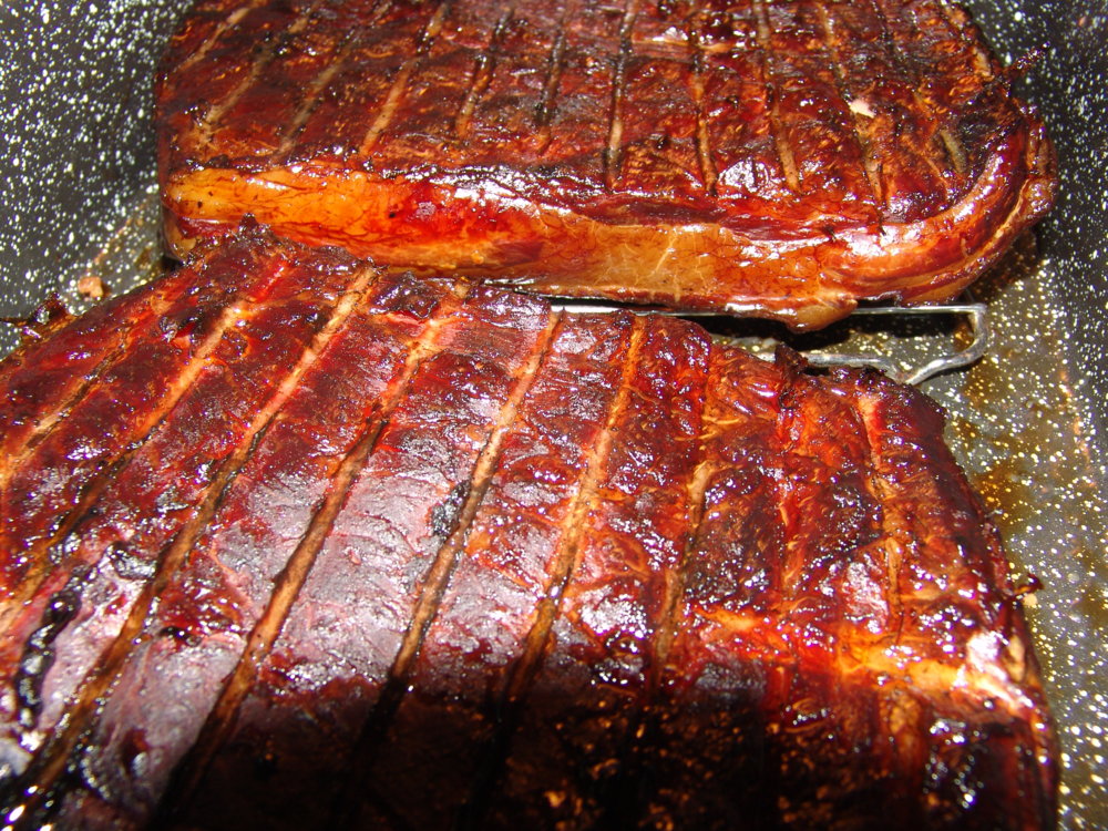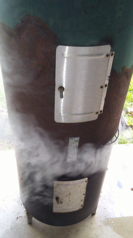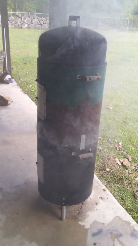[SPOILERO NOT CLICK THIS IF YOU'RE HUNGRY!]This is a modified Brink man water pot slow smoker. Double Decker with twice the capacity of the standard model.
