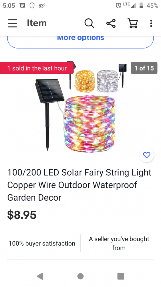So I remembered I was going to give a review of these Solar Powered LED String lights.Well the simple copper wire solar light string came in. It has 2 modes, flash and constant. It also has an on/off button. You have to cover the solar panel with something dark to know if it's on or off and what mode it's in. So even when it's on its off untill it gets dark, I like that auto sensing feature.